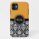 Yellow Black White Damask Monogram Letter Case-Mate iPhone Case