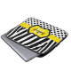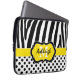 This 13" chic and trendy personalized yellow, black, and white zebra stripes and polka dots laptop sleeve has text boxes for you to add your name and monogram. ****PLEASE email me if you want a LARGER size one made up, as selecting it on your own will cause the design and text boxes to slip. If you need help customizing this with your own info, please email niteowlstudio@gmail.com for help.