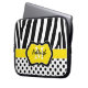 This chic and trendy personalized yellow, black, and white zebra stripes and polka dots laptop sleeve has text boxes for you to add your name and monogram. ****PLEASE email me if you want a LARGER size one made up, as selecting it on your own will cause the design and text boxes to slip. If you need help customizing this with your own info, please email niteowlstudio@gmail.com for help.