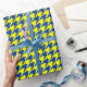 Yellow Blue Houndstooth Plaid Check Wrapping Paper
