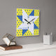 Yellow & Blue Pale Star Quilt Block Square Wall Clock