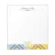Elegant, stylish and trendy customizable notepad features "personalized name's notes" at the top, "personalized monogram" and yellow blue plaid tartan at the bottom.