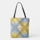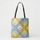 Yellow Blue Plaid Tartan Monogram Script Wedding Tote Bag