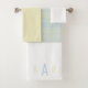 Pale Yellow and blue stripe monogram bath towel set. Personalized monogram.