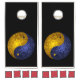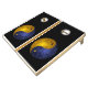Natural Wood Cornhole Set, Royal Blue and Yellow bags