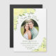 These beautiful magnetic wedding save the date cards feature a rustic yet elegant hand painted floral design with your photo in an oval frame surrounded by watercolor roses, blossoms, and flowers in shades of lemon and canary yellow, with a bevy of eucalyptus leaves, greenery, and foliage. The typography features fancy script lettering. This stylish boho chic card is a great way to make sure your friends and family are aware of your upcoming wedding.