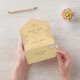 This all-in-one bohemian wedding invitation blends earthy tones of ivory and soft yellow, creating a warm, inviting feel. At the heart of the design, a romantic gold rope heart symbolizes the couple's love and unity. The delicate calligraphy adds a touch of elegance, while RSVP details and a sleek wedding website link are seamlessly integrated. The back of the invitation features a hand-addressed touch, making it uniquely personal. The overall design combines organic charm with timeless sophistication, making it the perfect choice for a spring celebration filled with love.