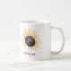 This coffee mug features a watercolor style illustration of a sunflower in yellow and brown. Your name or other personalized text is spelled out below in dark brown script. Use the template field to enter your own name or other message.