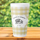 Enjoy your morning coffee with this rustic Yellow Buffalo Plaid Farm Pig Latte Mug. Mug design features a farm pig on an elegant tag and custom text for you to personalize with your family name against a gingham pattern background. Additional home decor items available with this design.