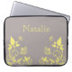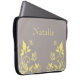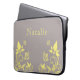 Sweet and dainty Butterfly Floral Electronics Sleeve with a muted dusty gray background and light yellow butterflies and floral vine embellishments. This elegant floral laptop sleeve will keep your gadget protected with a dash of girly flair! Easy to customize, simply add the personalized text of your choosing in the text fields provided. Click on the "Customize It" button to find additional personalization options.