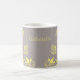 Sweet and dainty Butterfly Floral Mug with a muted dusty gray background and light yellow butterflies and floral vine embellishments. This elegant floral mug is perfect for drinking your favorite hot beverage with a dash of girly flair. Easy to customize, simply add the personalized text of your choosing in the text fields provided. Click on the "Customize It" button to find additional personalization options.