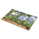 Yellow Butterfly Purple Flowers Above Ancient Wall Cloth Placemat features a photograph of a yellow butterfly drinking the nectar from lavender blue plumbago flowers above an ancient cracked stone wall. The nature photography and inspirational quote on this personalized placemat brings nature into your kitchen or dining room. These beautiful flowers and lovely butterfly are part of a lavender-blue flowering bush in Hampton Park, Charleston, SC, and are framed with the ancient wall upon which we read the inspiring quote, "All the flowers of all the tomorrows are in the seeds of today,"