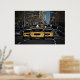 A charge of New York City Yellow taxi cabs make their way swiftly down 6th Avenue towards Washington Square Park in midtown Manhattan
