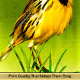 Beautiful illustration image of a yellow bird with a orange Orchids flower with a green and black butterfly flying beside the tropical plant.on a oil print image