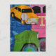Yellow Car Pink and Green Truckmixed media collage Postcard