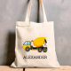 Yellow Cement Mixer Kids Personalized Construction Tote Bag