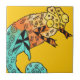 Yellow chameleon reptile art doodle illustration ceramic tile