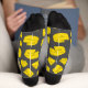 Yellow cheese slices. Seamless pattern. Custom background color. Custom top stripe color. Custom text on each sock.