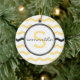 Butter yellow and charcoal gray chevron pattern with name and monogram.