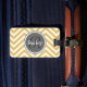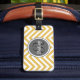 Monogrammed white and yellow chevron zigzag pattern with custom name. Cute, girly, trendy modern geometric design featuring a grey circle nameplate that is easily customized with your first name and last name initial letter.