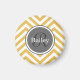 Monogrammed white and yellow chevron zigzag pattern with custom name. Cute, girly, trendy modern geometric design featuring a grey circle nameplate that is easily customized with your first name and last name initial letter.