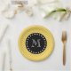 Yellow Chevron Pattern | Black Monogram Paper Plates