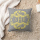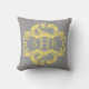 Elegant and sophisticated Chic Damask Mongram Pillow featuring a soft gray background and a stylish damask flourish embellishment in yellow. This modern design is easy to customize with your own text. Click "Customize It" to find more personalization options.
