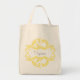 Elegant and sophisticated Chic Damask Bag featuring a stylish damask flourish embellishment in yellow. This modern design is easy to customize with your own text. Click "Customize It" to find more personalization options.