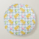 Yellow Chicks And Eggs On Blue Gingham Pattern Round Pillow