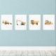 Add a finishing touch to your little one's space with this set of 4 colorful construction vehicle prints.