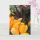 Blank greeting card featuring vibrant image of blossoming yellow crocuses. Perfect for spring greetings.
