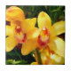 Close up of a Yellow Cymbidium Orchid with red labellum, taken on the Island of Madeira