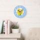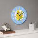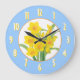 A wall clock with yellow and orange daffodil flowers white and yellow numbers on a light blue background. Click Customize It to add your name or message, change background colors and more.