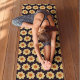 Yellow Dahlia Floral Pattern on Black Yoga Mat