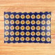 Medium size, glass trinket tray features the photo image of a yellow Dahlia flower on a navy blue background and printed in a repeating pattern. Tray can be used for display or for holding candy, coins, jewelry, keys and other small items. A fun, floral design!