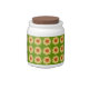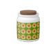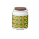 This little, white porcelain candy jar with cork lid is the perfect container for candy, tea bags and more. Jar features the photo image of a yellow Dahlia flower on a lime green background and printed in a repeating pattern. A fun, floral design!
