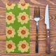 Yellow Dahlia Floral Pattern on Green Cloth Napkin