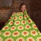 Yellow Dahlia Floral Pattern on Green Fleece Blanket