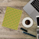 This versatile, mini binder can be used in the office, home, or in the field as a note keeper or date planner and features the photo image of a yellow Dahlia flower on a lime green background and printed in a repeating pattern. A fun, floral design!