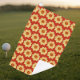 Yellow Dahlia Floral Pattern on Red Golf Towel