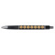 Cool and trendy pen that features an image of a yellow Dahlia flower on a black background and printed in a repeating pattern.