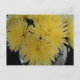 A vibrant postcard for summer showcases the beautiful artwork of bright yellow flowers. Beautiful dahlias arranged in a glass container.
