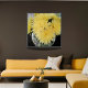 A vibrant yellow poster with a delightful floral artwork, perfect for embracing the summer vibes. Beautiful dahlias are arranged in a lovely glass container.