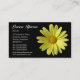 A business card with a yellow daisy photo motif. Business name etc on the front with other details on the reverse with the same motif and style.