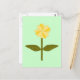 This floral postcard features a digital image of a daisy with a green stem with two green leaves on it and light and dark yellow coloured petals. This is a simple, yet beautiful design. The background is a pale grass green colour.