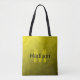 Yellow dark ombre geometric mesh pattern Monogram Tote Bag. Personalize with your custom initial and name. Yellow gold ombre gradient geometric mesh pattern. Triangle geometric mesh with light dark yellow gold black ombre gradient.