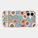 Personalize this cell phone cover with a name or text or no text on my original modern floral design featuring paintings of colorful bunches of pink, blush and peach African Daisies, aka Gazania, on a blue background.