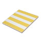 Bold wide yellow and white deckchair stripes on home items to evoke memories of the seaside.