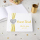 Elegant diamond heart with a yellow ribbon decorate this guestbook. Wedding guest books are fun for both the couple and their celebrants. Invite attendees to leave you well-wishes at your reception, and you're guaranteed to have a keepsake to look back on for years to come. Plus, your guests will get to leave their mark on your event, not to mention put in writing whatever they didn't have a chance to express in person on the big day. Personalize the book by changing the text in the fields provided. You can change font style, size, and color.