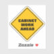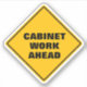 Funny classic yellow diamond caution road sign warns of cabinet work ahead in a thick black sans serif font. Perfect for the woodworker, carpenter, cabinet maker hobbyist.